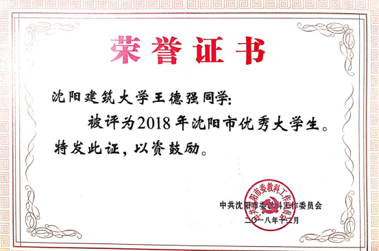 沈阳市优秀大学生 |